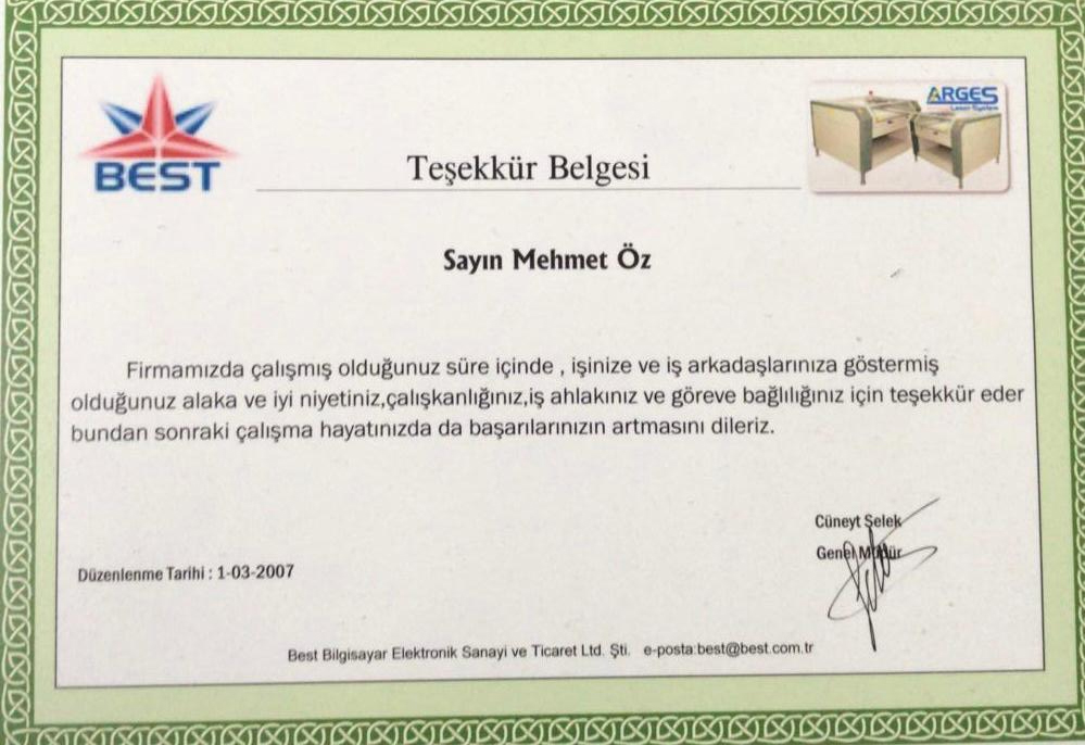 Mercek Lazerin kurucusu Mehmet ÖZ ; 1999 yılının son aylarında Best Arges Lazerde işe başladı, 20 yıla yakın bu firmaya hizmet verdikten sonra Mercek Lazeri kurdu.