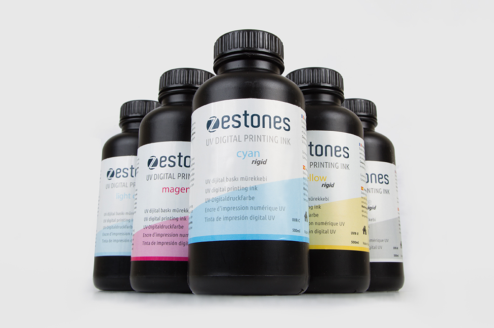 Ultraviyole baskı için tercih edilen Zestones UV Mürekkepleri, kullanım alanlarına göre sert ve yumuşak zemin mürekkepleri olarak ikiye ayrılır.