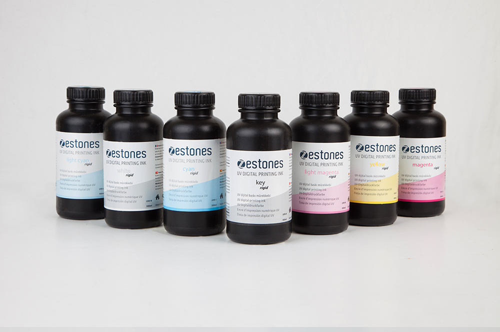 Ultraviyole baskı için tercih edilen Zestones UV Mürekkepleri, kullanım alanlarına göre sert ve yumuşak zemin mürekkepleri olarak ikiye ayrılır.